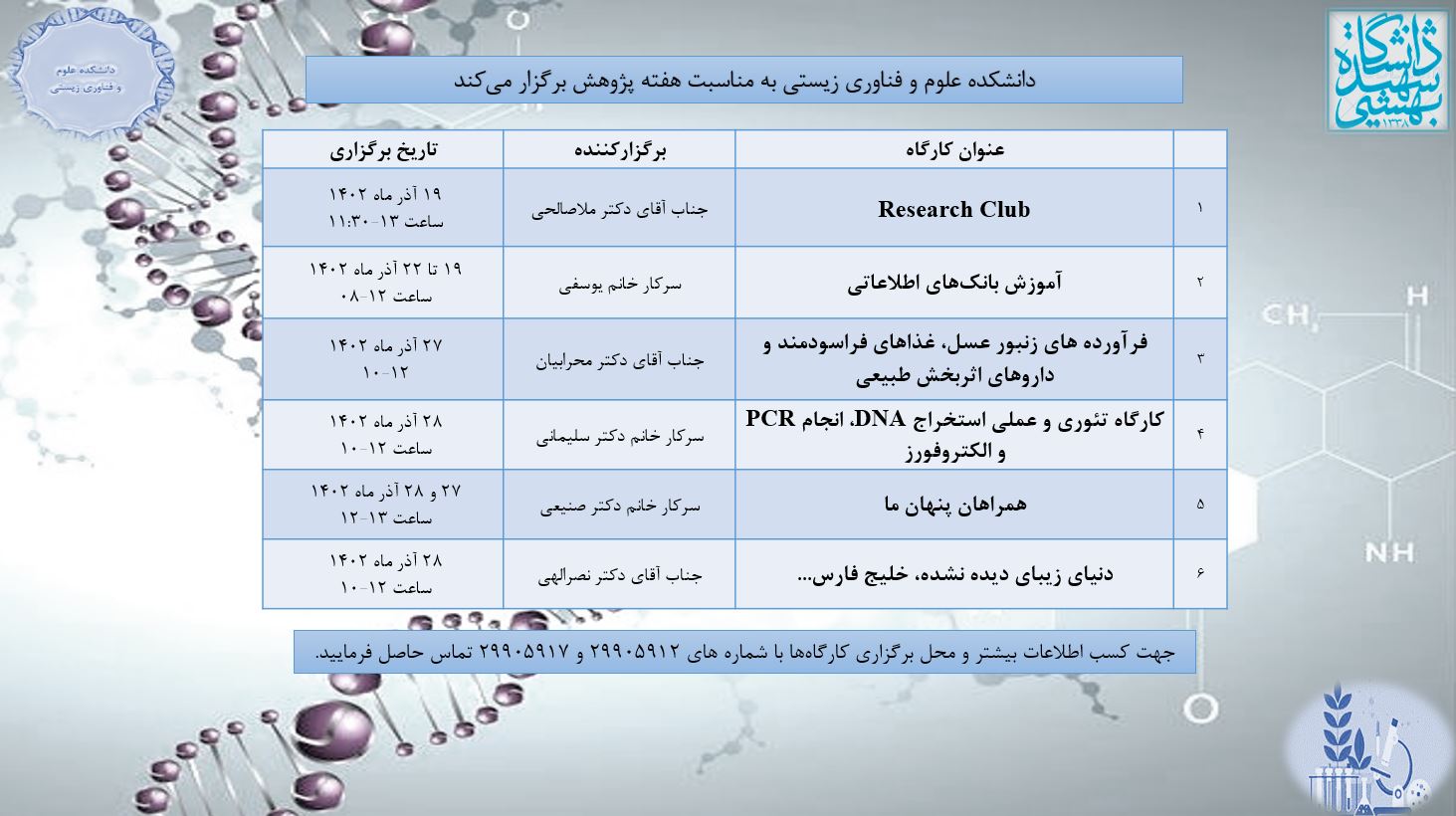 صفحه اصلی برنامه های هفته پژوهش: دانشکده علوم و فنآوری زیستی دانشگاه شهیدبهشتی 1337 بازدید print share برنامه های هفته پژوهش: دانشکده علوم و فنآوری زیستی دانشگاه شهیدبهشتی برای اطلاعات بیشتر...